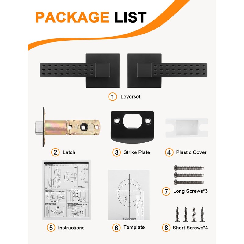 √Includes all accessories (screws/tools/faceplate/strike/latch bolt)