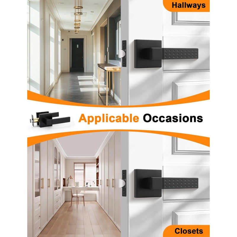 Tinewa 10 Pack Matte Black Interior Door Handles Inside Door Knobs Without Key, Hall Closet Door Handles with Left/Right Handing