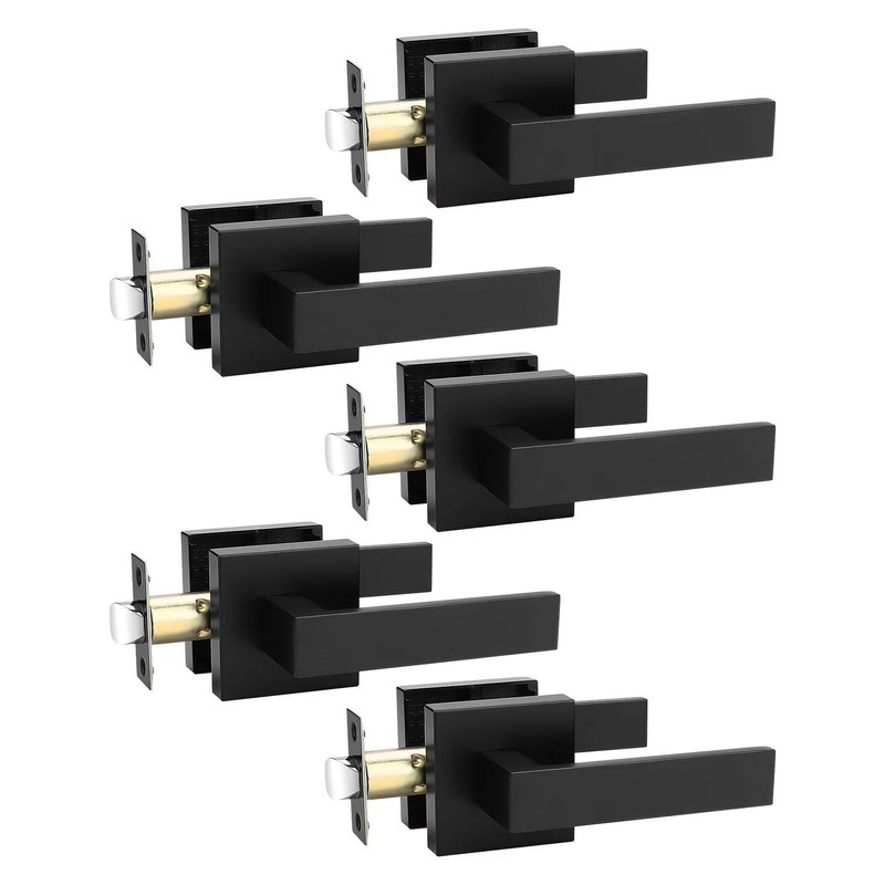 Tinewa 5 Pack Square Black Door Handles Interior, No Lock Passage Door Lever for Left or Right Handing, Heavy Duty Matte Black Closet Door Handle Sets