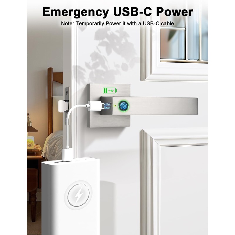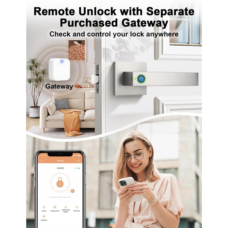 - [Unlock With Smart APP]: You can use mobile phone to unlock.The ability to store multiple fingerprints allows for seamless management of guest access, accommodating visitors without compromising security.Furthermore, You can set temporary eKeys and share it with friends or housekeepers. This door lock is very suitable for families, hotels, schools and garages. Support ios and android devices