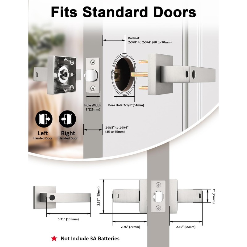 - [Easy Installation]:Fits most standard single-cylinder US doors. The simple installation takes minutes with a screwdriver(included). No extra drilling. Door thickness: between1-3/8" (35mm) to 2-3/16"(55mm), adjustable latch 2-3/8"(60mm) or 2-3/4"(70mm). Please check your door size before purchase