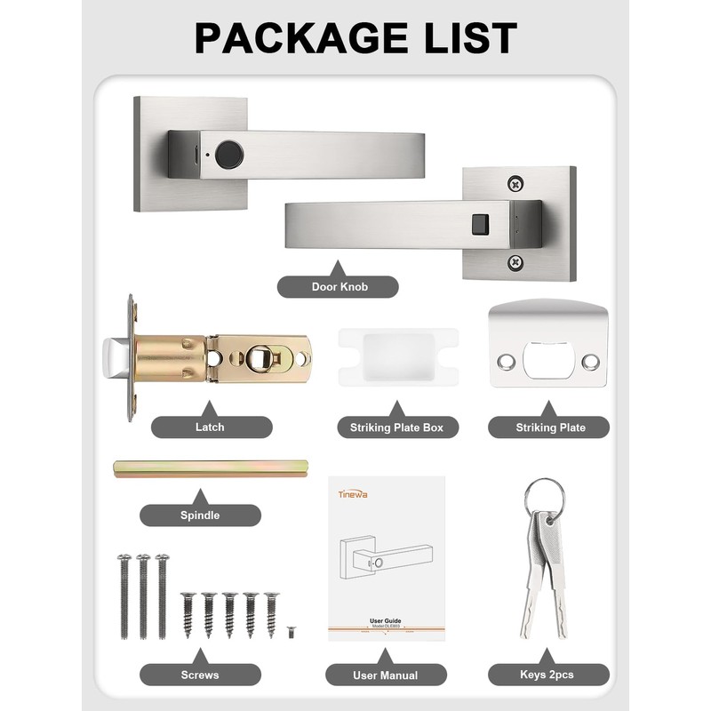 Tinewa Fingerprint Door Lock, Biometric Door Knob with Smart Lock, Keyless Entry Door Handle Lock with App, Bedroom, Office, Hotel, Pantry, Satin Nickel