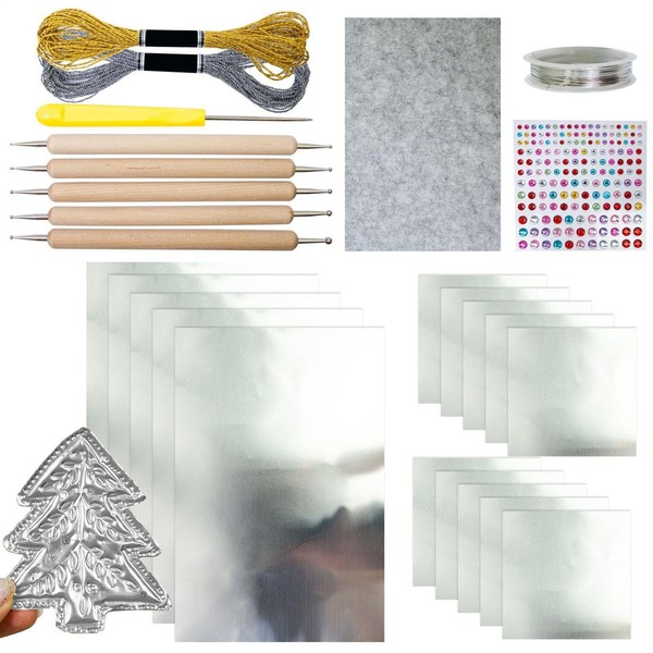 - Must-Have Foil Crafting Bundle: Includes fifteen aluminum sheets in gold or silver, two rolls of wire, golden and black carving tools, and small sheets for versatile crafting projects with varied design options