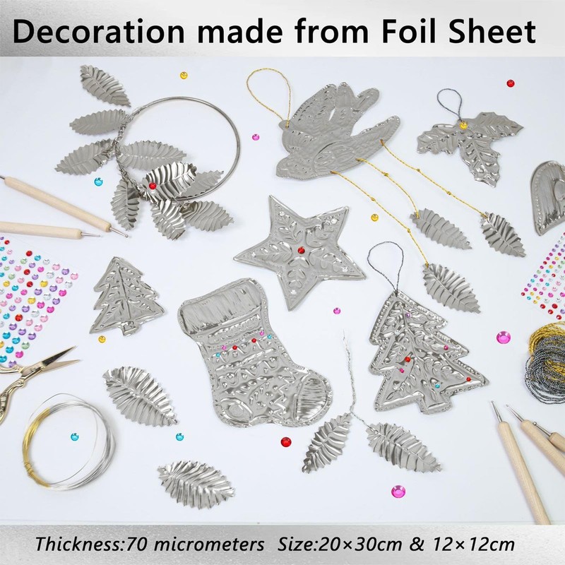 Tinfoil Paper Sheets Crafts, Aluminum Metal Crafts Foil Roll, Foil Sheets for Crafts, Silver Gold Shimmer Shiny Embossing Engraving Painting Kit Crafting Art for Kids Adults