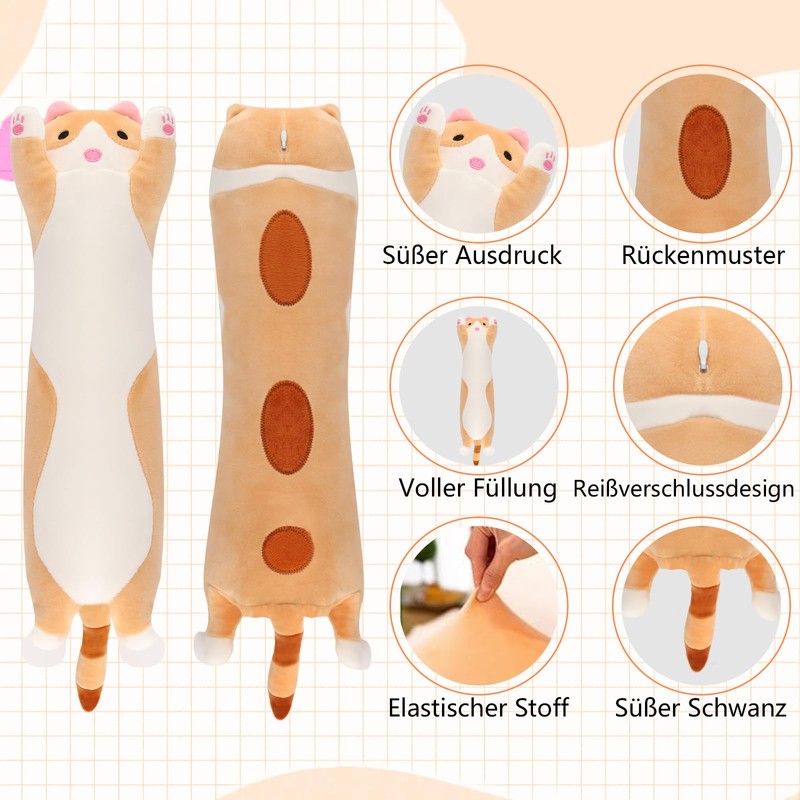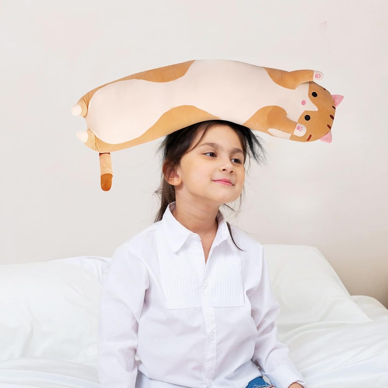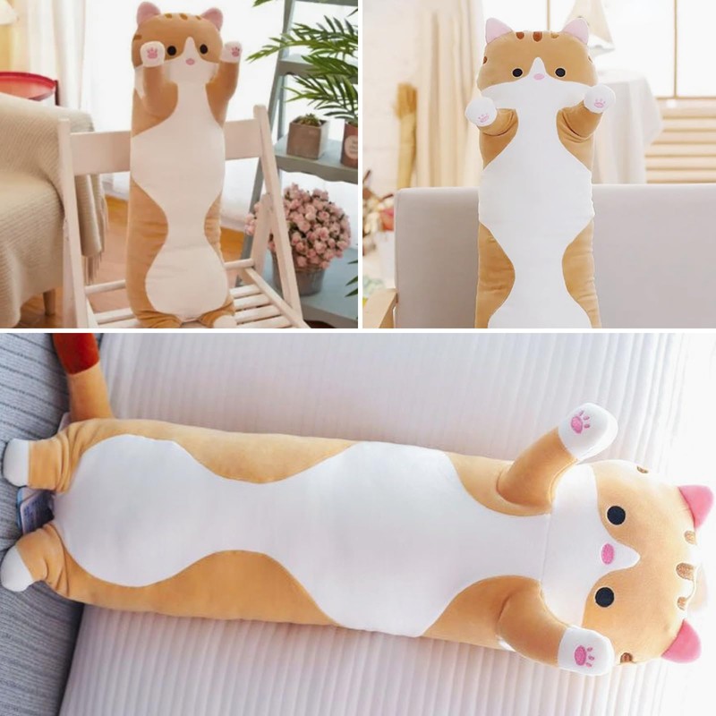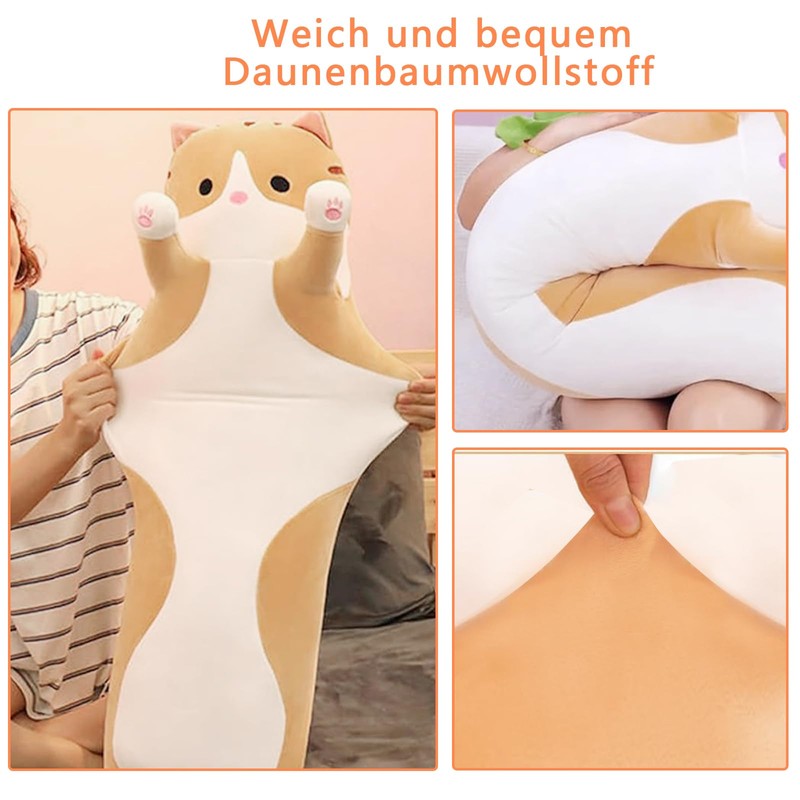 - Versatile: long stuffed animal cuddly toy cat is not only the best lumbar cushion for sitting when resting or working, but also the best sleeping pillow and pillow for a peaceful sleep. Cat cuddly toy with its soft and cosy texture, it is ideal for cuddling and relaxing.