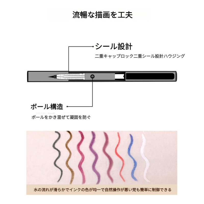 - 2. 極細0.1mmペン先で繊細なラインから大胆なデザインまで自由自在 - プロ仕様の超極細ペン先で、細かい部分も正確に描ける - 初心者でも簡単に扱える滑らかな描き心地 - ナチュラルなラインからドラマチックなデザインまで幅広く対応 - ストレスフリーの滑らかな描き心地で、途切れず均一なライン - 目頭から目尻まで一筆で描ける優れた発色性
