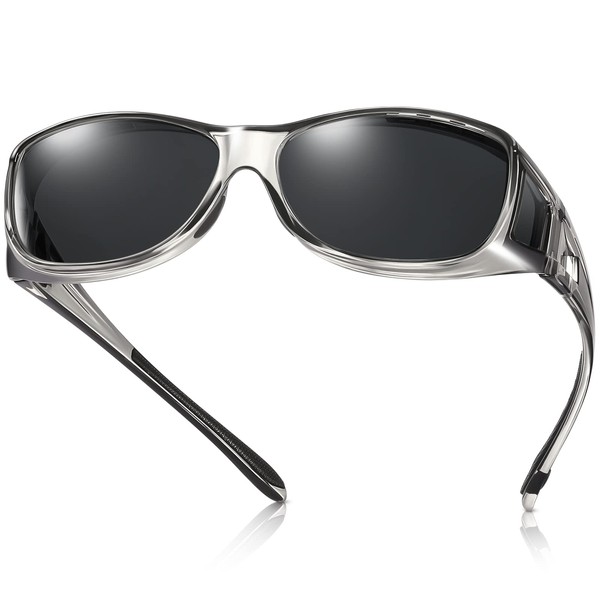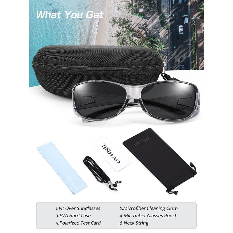 TINHAO Fit Over Sunglasses For Women - Polarized Fitover Sunglasses (Transparent Grey, Black)