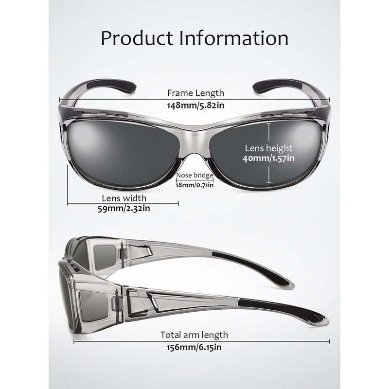 - SPECIAL SUNGLASSES - Fit over the regular prescription glasses or reading glasses!(Lenses height within 1.49 inch,frame length within 5.31 inch).