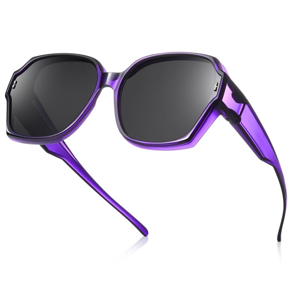 TINHAO Square Oversized Polarized Fit Over Sunglasses Over Glasses with Lightweight Large Frame for Woman Man(Transparent purple, Black)