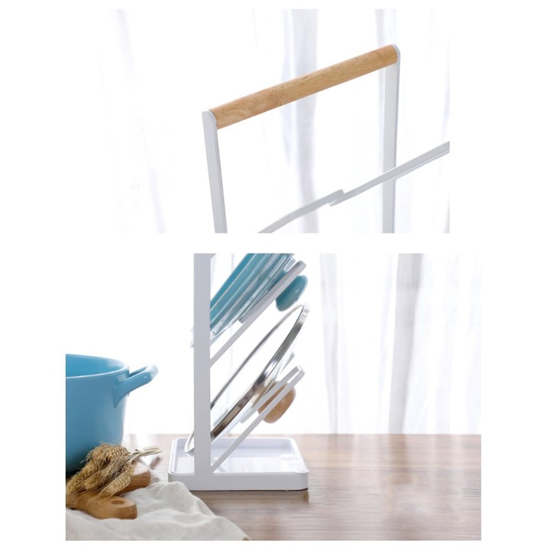• White x Wood Pot Lid Stand fits in any kitchen