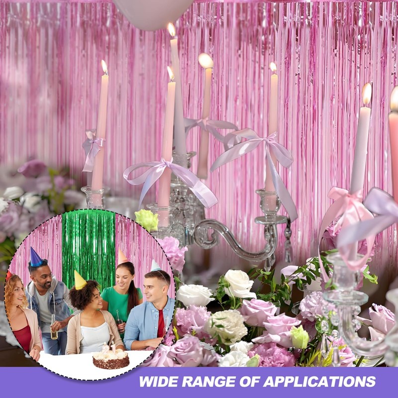 The set has 4 pcs of foil fringe tinsel curtain backdrop, each pink streamers measures 6.5ft x 3.2ft, giving you plenty of decorations to spice up your party