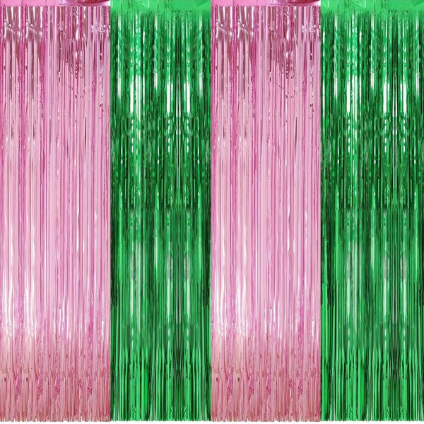 Tinsel Backdrop Foil Fringe Tinsel Curtain Backdrop Pink Green Streamers Party Decorations for Birthday 6.5ft x 3.2ft