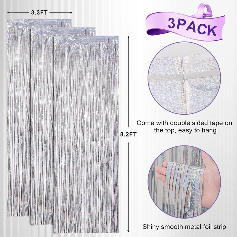 - Easy installation: our metal curtains have a shiny shine, can easily brighten up the party and help brighten up the atmosphere. On the back of the foil curtain is already attached double-sided tape. Tear off the back of the double-sided adhesive tape and then stick the fringe curtain to the top of the wall or door. Easy and convenient operation, no time consuming.