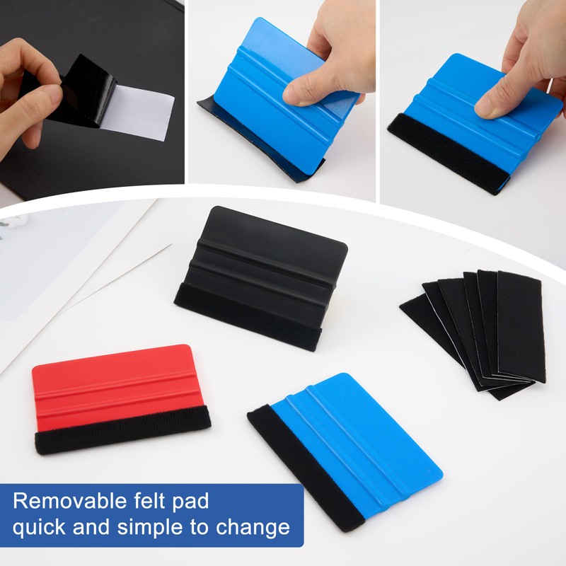 - Scratch-Free Felt Protection: One side of each felt squeegee features a soft black felt layer that effectively prevents scratches and scuffs. It ensures smooth, damage-free surfaces during applications such as window tinting, wall covering, and vinyl wrapping, delivering professional-level results every time.