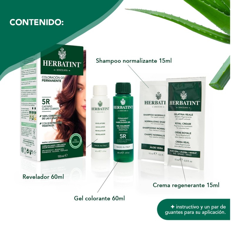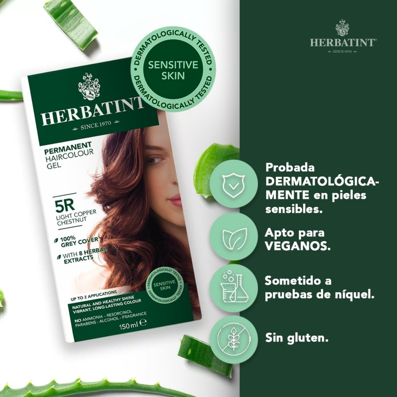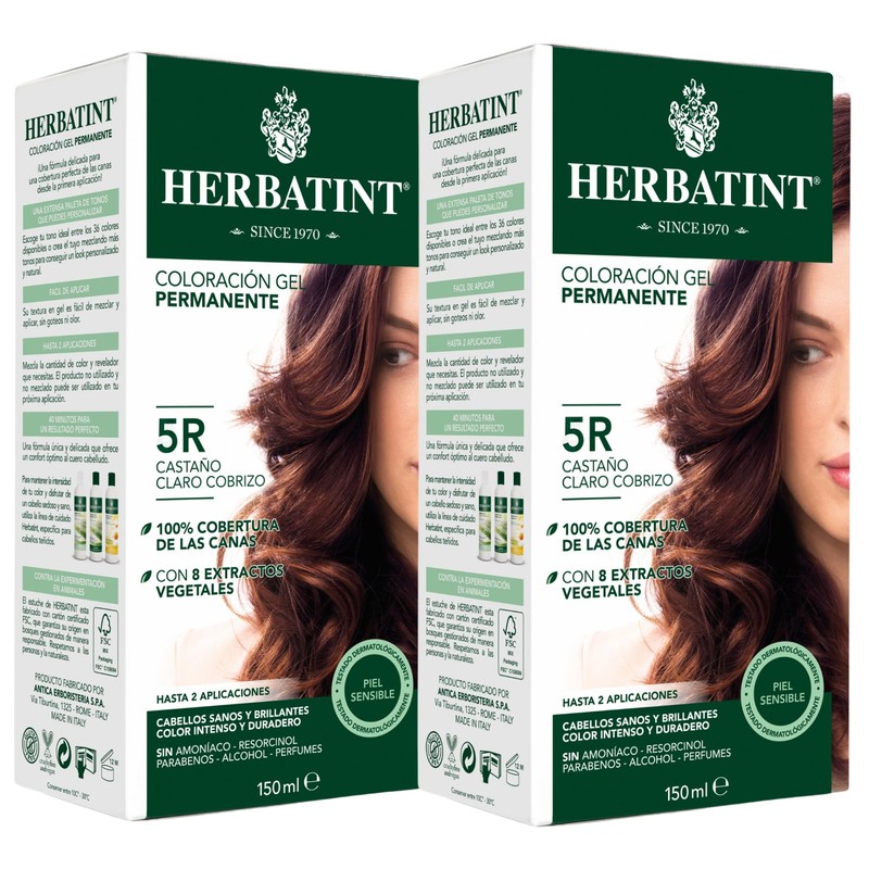 Tinte permanente sin amoniaco HERBATINT Castalño Claro Cobrizo 5R (Pack 2 Piezas)