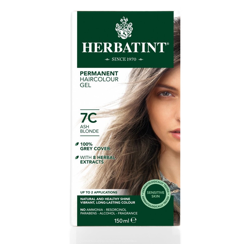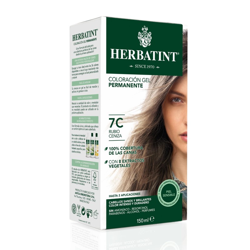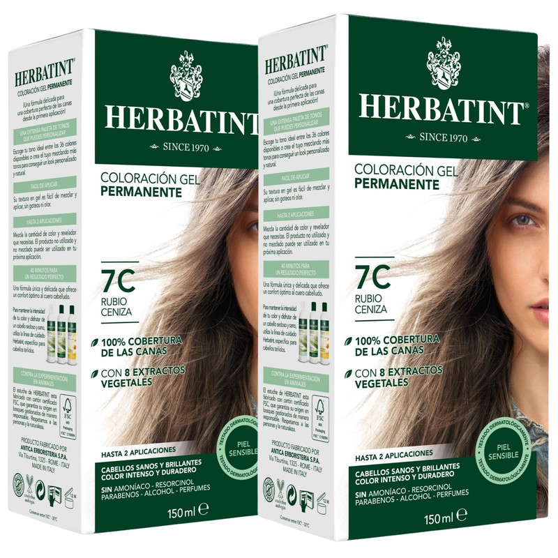 Tinte permanente sin amoniaco HERBATINT Rubio Ceniza 7C (Pack 2 Piezas)