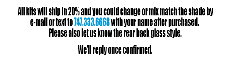 - Tint Shades: Available in 50%, 35%, 20%, and 5% Dark Limo