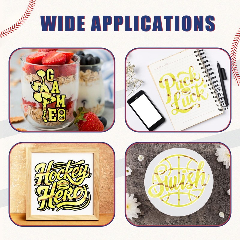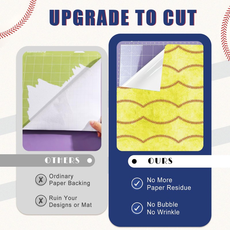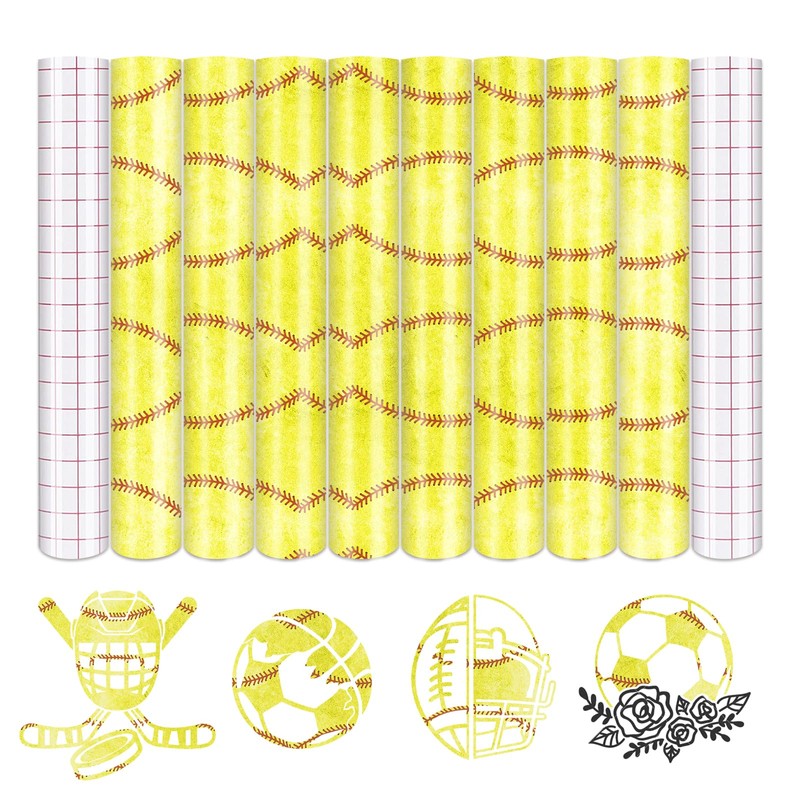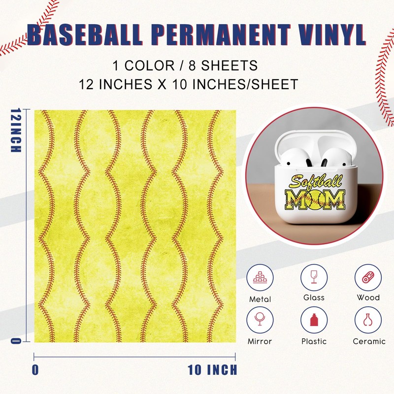 Tintnut Baseball Pattern Permanent Vinyl - 8 Sheets 12"x10" Yellow Adhesive Vinyl Sheets Self Sticker Water Proofing Vinyl Compatible with Cricut Or Silhouette