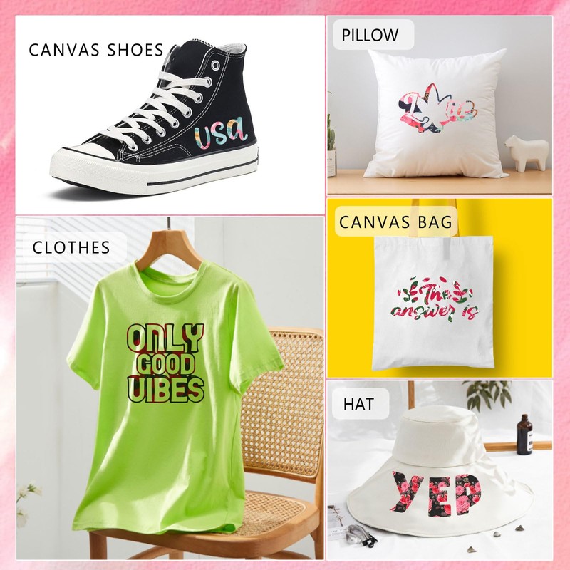 • Wide transfer: this vinyl iron-on patch can be used for DIY T-shirts, shoes, hats, coffee bags, handbags, pillows, etc. Commonly used on many fabrics for cotton, polyester and cotton.