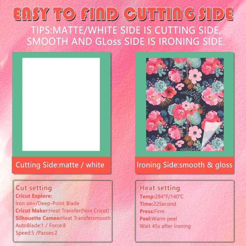 • Customised service: We love DIY heat transfer as much as you do. We are very ready, you can contact us at any time and let us know if you have any questions about using this vinyl.