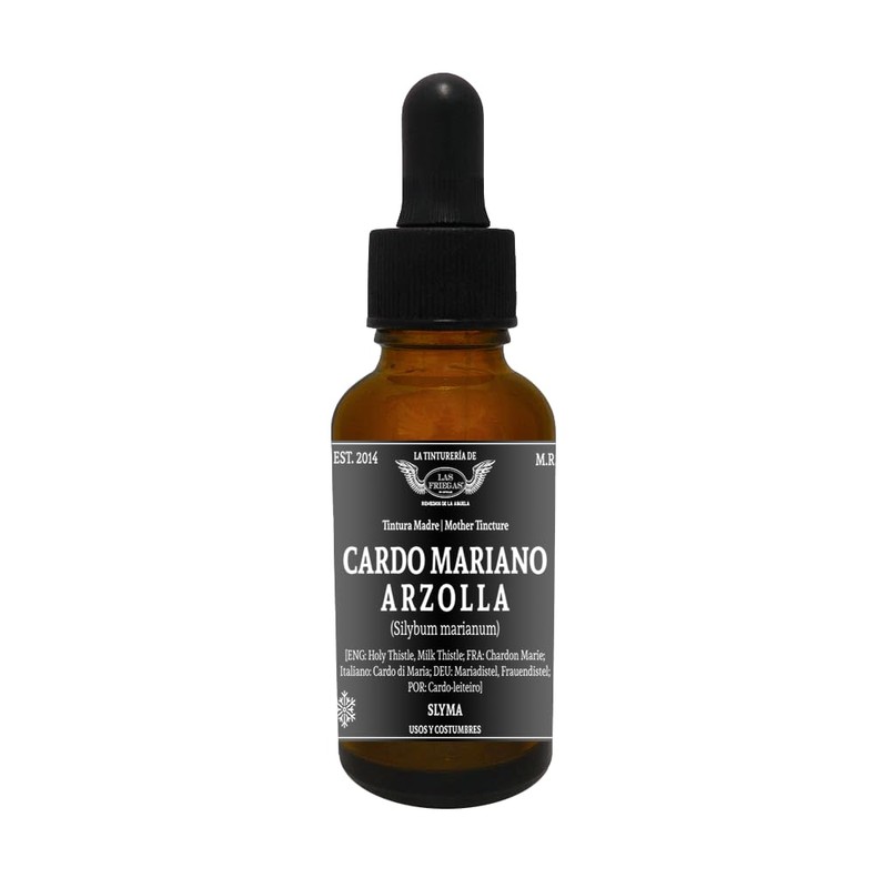 Tintura Madre de Cardo Mariano, Abrepuños, Alcauciles, Arzolla, Bedegar, Cardo Borriquero (Silybum marianum) de Hojas, Flores y Semillas de nuestro huerto agroecológico Gotero 30 ml - Conserva Herbolaria - El Herbario de la Abuela, La Tinturería - Las Fr