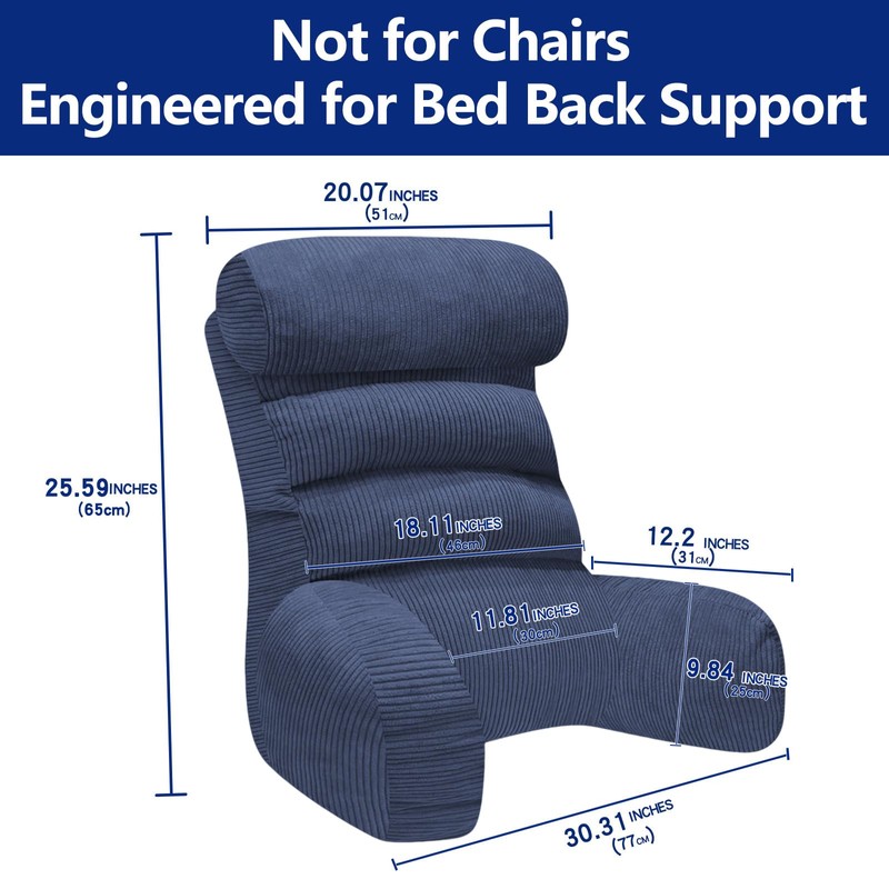 - Reading Backrest Pillow New Upgrade: The cervical pillow design supports the neck and allows the cervical spine to stretch and relax while resting. The raised back design increases the backrest height to 30.7 inches, providing ample support for the back. The wavy design of the backrest area enhances softness and comfort when leaning. The armrest height has been increased to 9.44 inches for better support and relaxation of the arms.