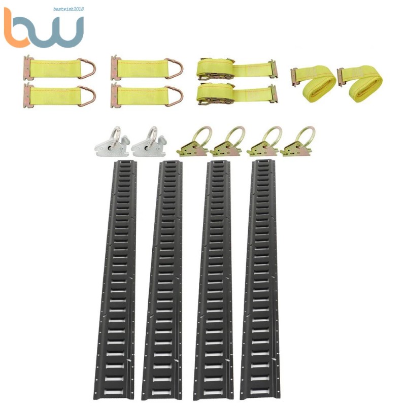 TINVHY Rail Tie Down Kit With Accessories Etrack System Starter Black Horizontal Steel