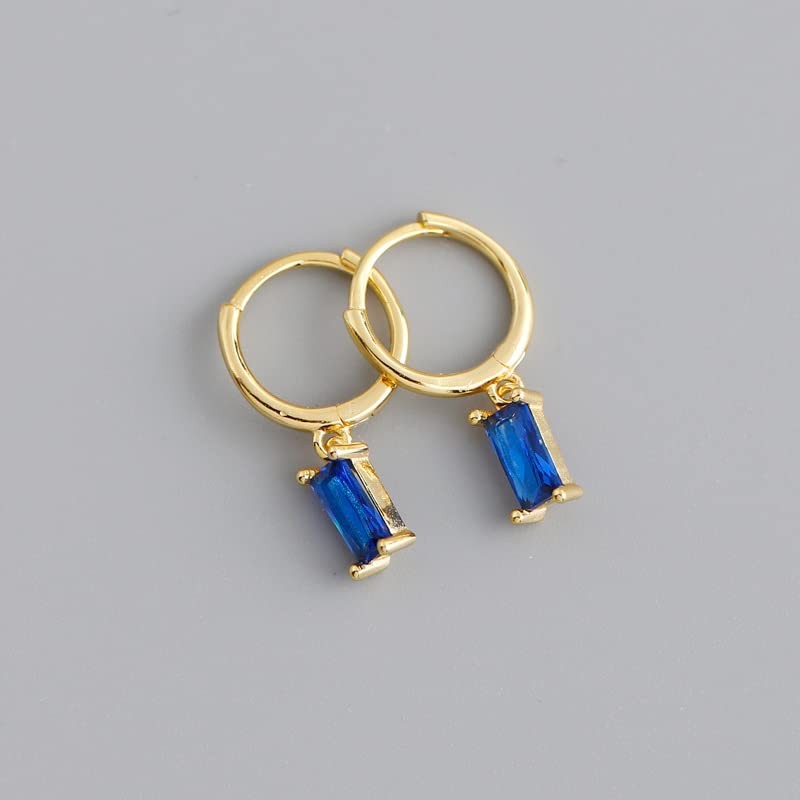 - Cz Square Dangling Hoop Earrings: about 7x4mm cute small cz rectangle charm dangle hoop earrings, simple yet stylish. Different colors of cubic zirconia stones to choose from, matching different clothes.