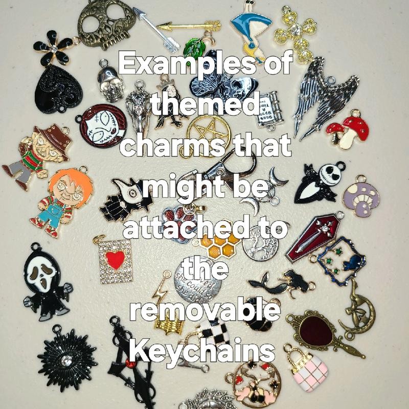 The binding, snap button hardware, small O rings, and charms come in multiple various colors and slightly varying sizes ensuring that each bookmark is distinguished. (You may request a color preference in your order notes and we will try our best to accommodate the request however no guarantees are made with standard version orders.)