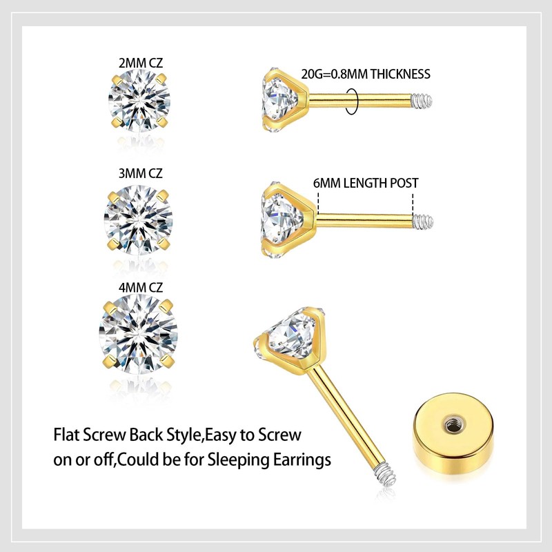 • Flat Back Stud Earrings: You will receive 1 pairs of high-quality CZ earrings. You can wear them in your cartilage piercings, like a tragus, conch, daith, helix or your standard lobe piercing. There are 7 colors and 2/3/4mm size for you choose