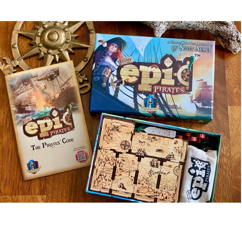 Tiny Epic Pirate is an action adventure game on the theme of pirate. Each player embodies a captain there who wants to increase his reputation and fortune. The goal is to be the first to bury three treasures. Tiny Epic Pirates is based on an action system over washers as well as action combinations.