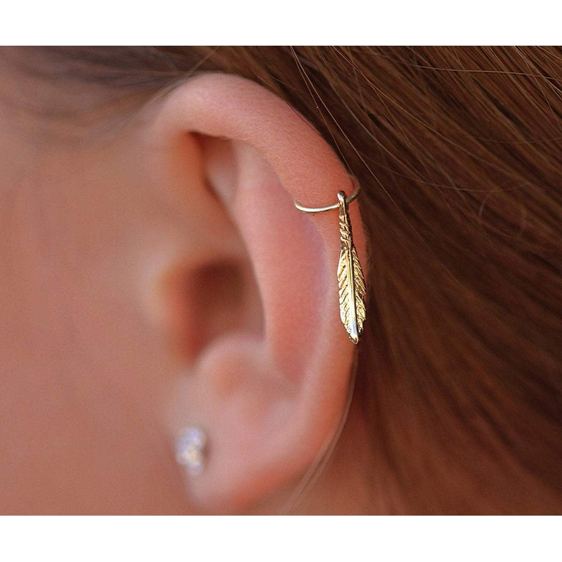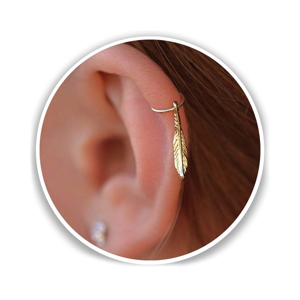 Tiny Feather Piercing Earrings - Gold Ear Piercing - 20G Piercing Earring, Tiny Feather ear piercing,Tiny Feather Cartilage ring,small ear piercing,
