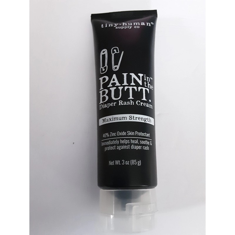 The Tiny Human Pain In The Butt Diaper Rash Cream by Tiny Human Supply Co is a max strength baby diaper rash cream designed to provide relief for diaper rashes and sore bottoms. Made in the United States, this product is specifically formulated for babies and is guaranteed to work effectively. With an expiration date of 2/26, parents can trust that they are using a safe and reliable option for their little one's skin care needs.