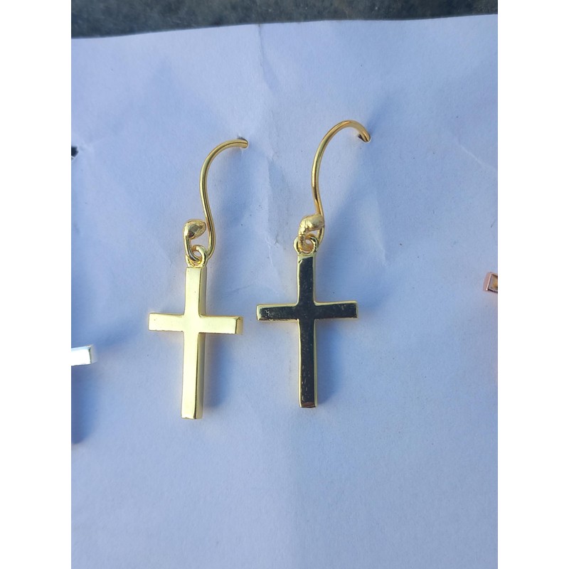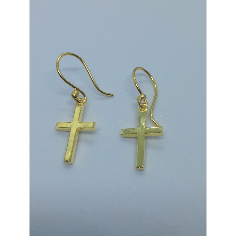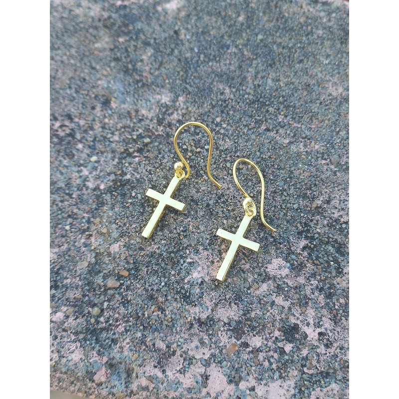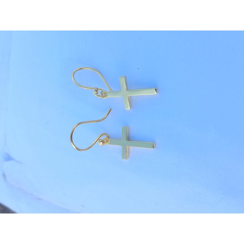 Tiny Plain Cross Christian Sterling Silver Plated Drop Dangle Fish Hook Shepherd Earrings 15 MM (Yellow Gold Metal)