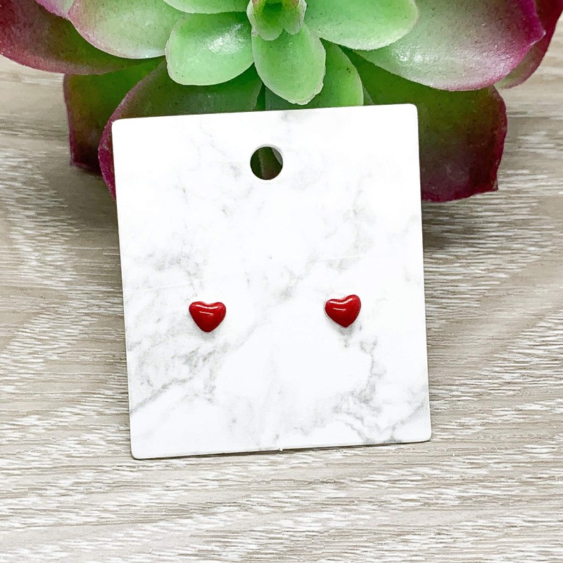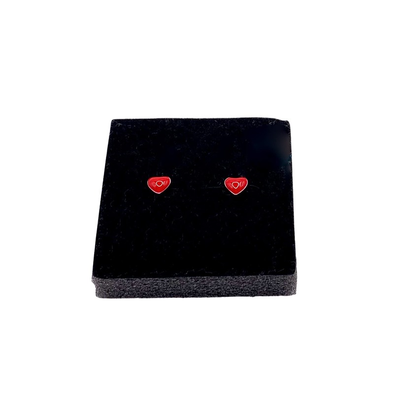 Tiny Red Heart Stud Earrings Sterling Silver Handmade