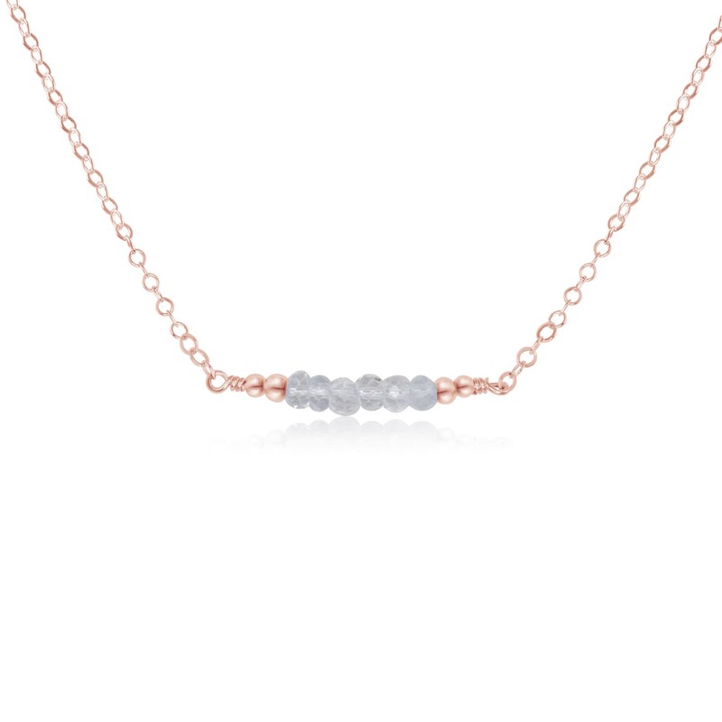 Tiny Sparkling Crystal Quartz Faceted Bead Bar Necklace in 14k Rose Gold Fill