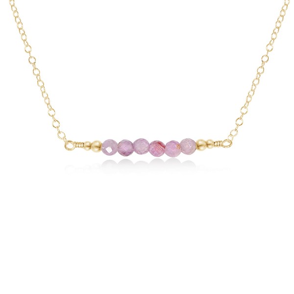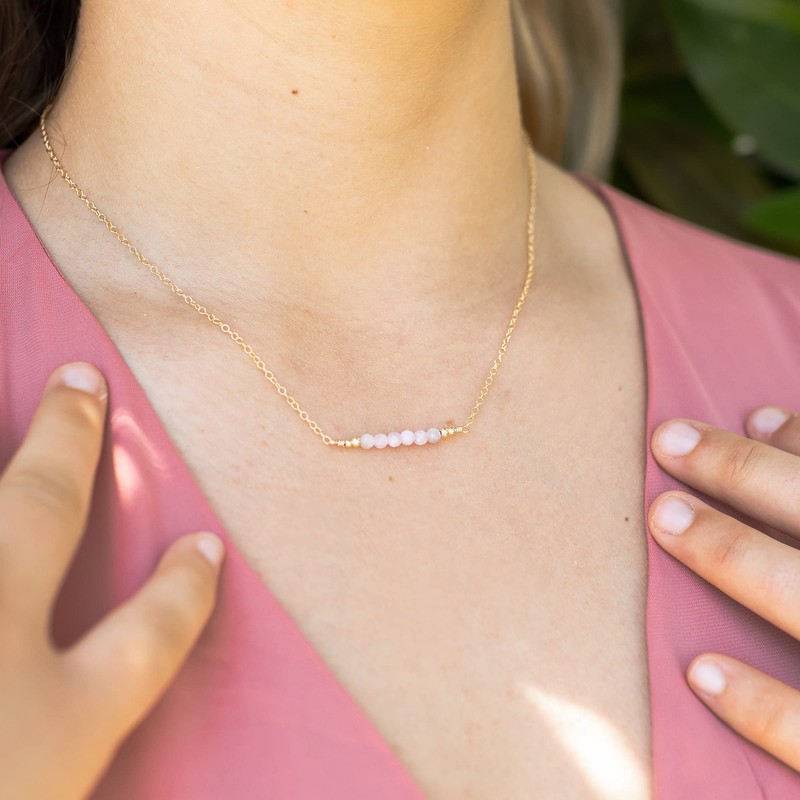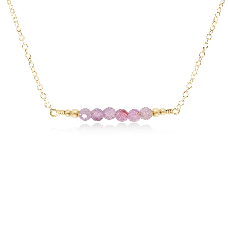Tiny Sparkling Kunzite Faceted Bead Bar Necklace in 14k Gold Fill