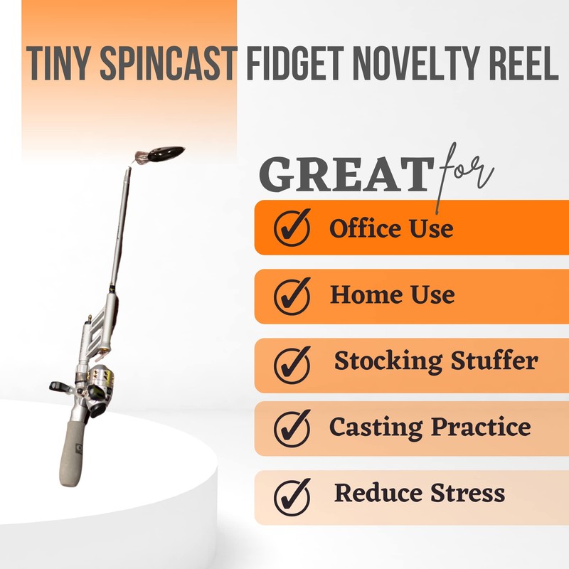 Tiny Spincast Fidget Novelty Reel by ProFISHiency | Mini Pocket Combo, Collapsible to 14", Extends to 20" | Office Desk Gag Gift White Elephant Toy | (Casting Practice, Reduce Stress),Silver/Gold