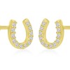 Tiny Sterling Silver Yellow Gold-Tone Horseshoe Stud Earrings with Cubic Zirconia CZ