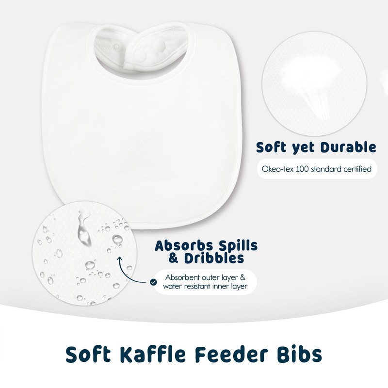 - SAFE & MESS-PROOF: Our baby bibs can do the job of keeping babies' clothes dry and free from spills, drool, and drips. We also care about the safety of our patrons, parents, and kids. We crafted these unique bibs with our trademarked dual-blended Kaffle fabric that becomes softer with each wash. Kaffle is gentle on baby's skin, breathable, durable, and lightweight. It is also tested for safety and certified OEKO-TEX Standard 100, ensuring they contain no potentially unwholesome chemicals.