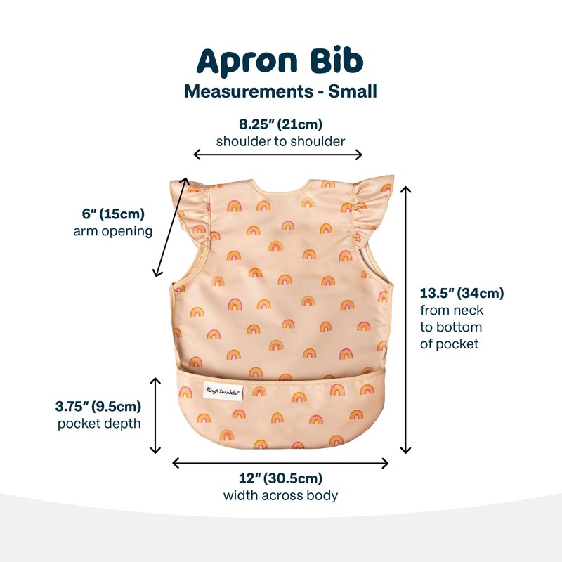 Tiny TwinkleTiny Twinkle - Shine from the beginning! Bib size details: Length: 42.5 cm. Chest: 33 cm. Sleeve: 31.5 cm. Folded size: 15 cm x 10 cm. For children aged 6 to 24 months, suitable for boys and girls. Little ones love the Tiny Twinkle Mess-proof Bibs! - Waterproof, recycled material: Tiny Twinkle mess-proof bibs are soft, lightweight and very durable. They are made from high-quality, waterproof coated polyester derived from recycled plastic bottles!- Free from PVC, BPA and phthalates: Our fabrics are rigorously tested to be free from toxic chemicals and are certified by OEKO-TEX to Standard 100. - Tear-resistant closure: our pull-resistant Velcro closure ensures that the bib stays on even during messy meals. Tiny Twinkle bibs mean less stress and less mess! - Superior collection pocket: All Tiny Twinkle bibs are equipped with a spacious collection pocket that stays open to catch dropped food and avoid contamination. Thanks to the innovative "flip" design, the pocket stays open longer than other bibs.- Waterproof elastic cuff: Our sleeve bibs feature high quality elastic wrist cuffs that are soft and fully enclosed in the waterproof fabric of the bib. - Foldable for travel: Our "flip" bib pockets are also suitable for travel. Simply turn the bag over, roll the bib into the bag and then fold it in half! So the bib can be easily stored in the changing bag on the go.
