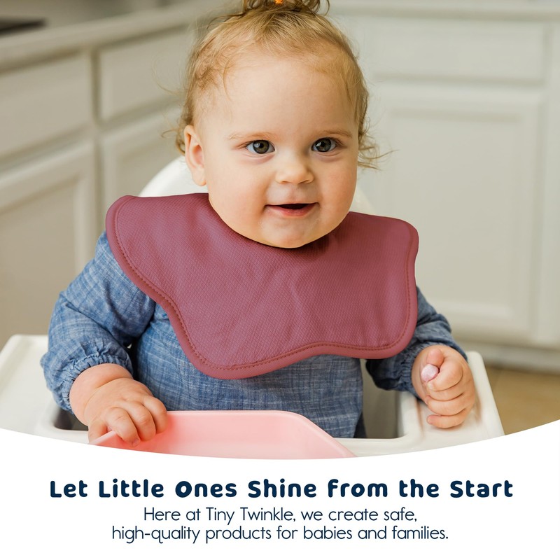 • LET LITTLE ONES "SHINE FROM THE START": Here at Tiny Twinkle, we aim to create high-quality and safe products for babies. We provide unique and functional feeding bibs made of OEKO-TEX Standard 100 certified Kaffle fabric. First-time parents can feel at ease their bundles of joy are using these stylish bibs for fun and spend less messy during their teething stage.