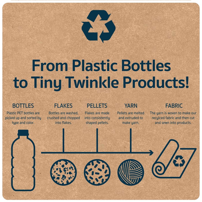 Tiny Twinkle Mess-proof Full Sleeve Bibs are 100% recycled polyester that is made from recycled plastic. Soft, lightweight and waterproof, these bibs are the best way to protect from messes and keep baby comfortable during mealtime!