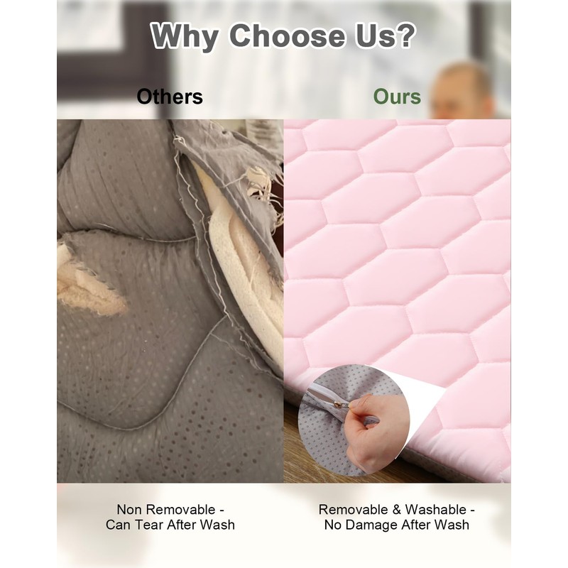 TINYHARBO Premium Foam Baby Play Mat 50" x 50" with Removable Cover, Extra Thick Padding Playpen Mat, Non-Slip Floor Mat, Stylish & Easy to Clean for Crawling Baby, Infants & Toddlers, Pink