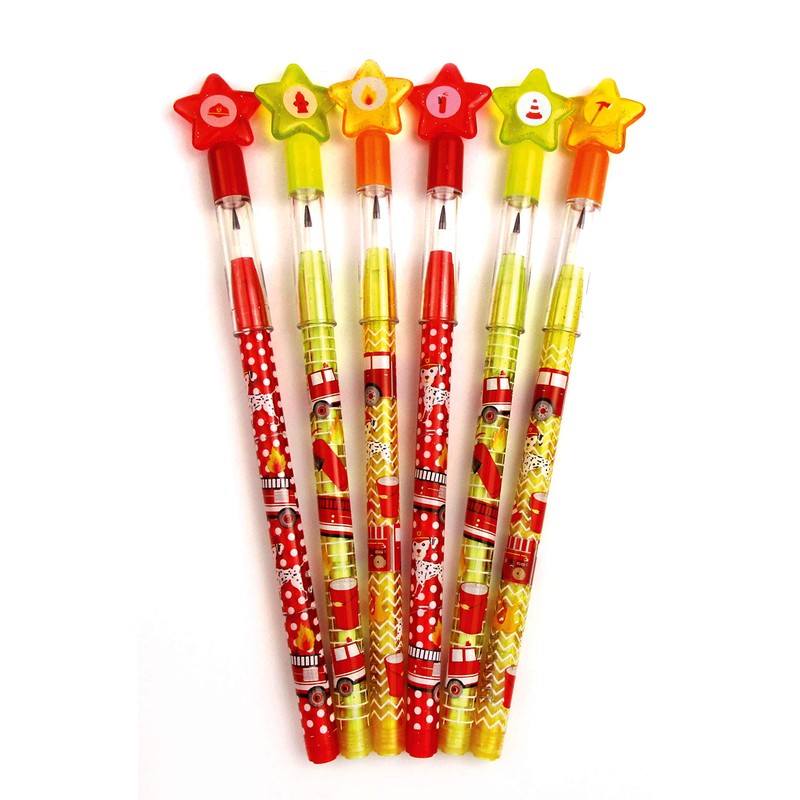 - 24 Fire Truck stacking pencils with non-sharpening leads