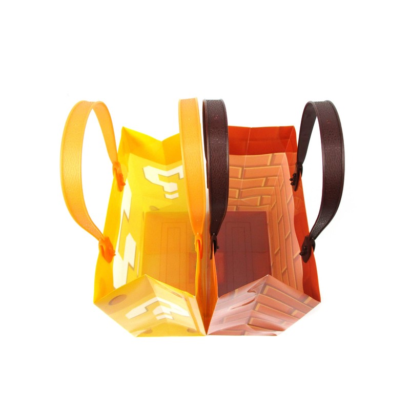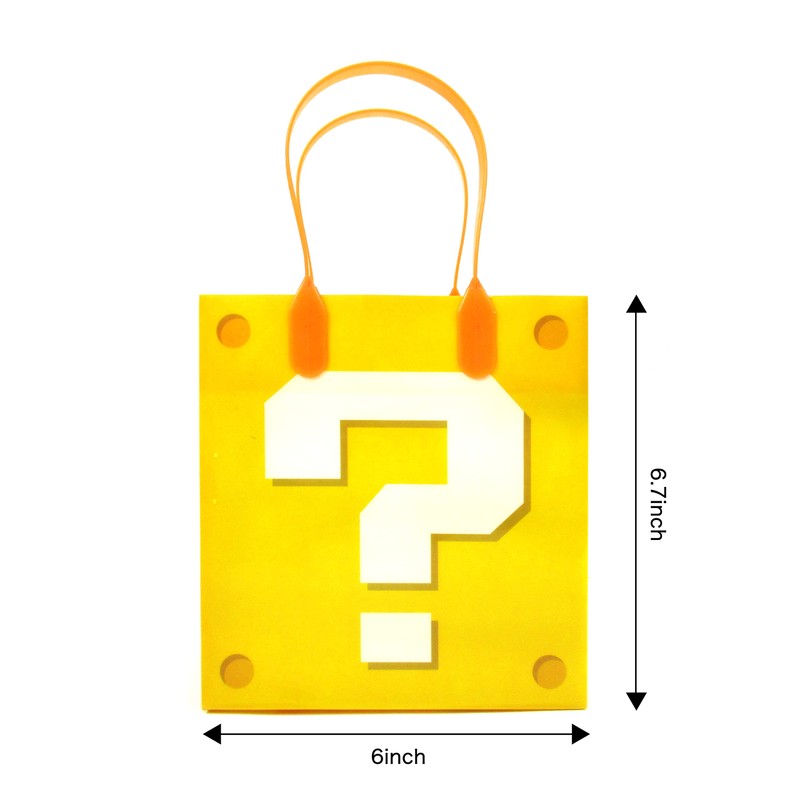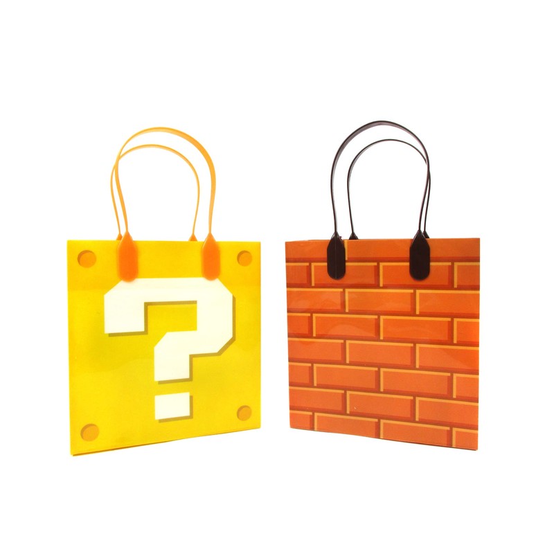 - 12 assorted plastic REUSABLE gift bags with handles in Super Bros video game designs! Bag handles are sturdy and will not break like other paper bags! Fill them up with Sloth party favors like our stampers and pencils plus so much more like juice boxes and other snacks! The bag will be able to hold all the party favors goodies without splitting or breaking!