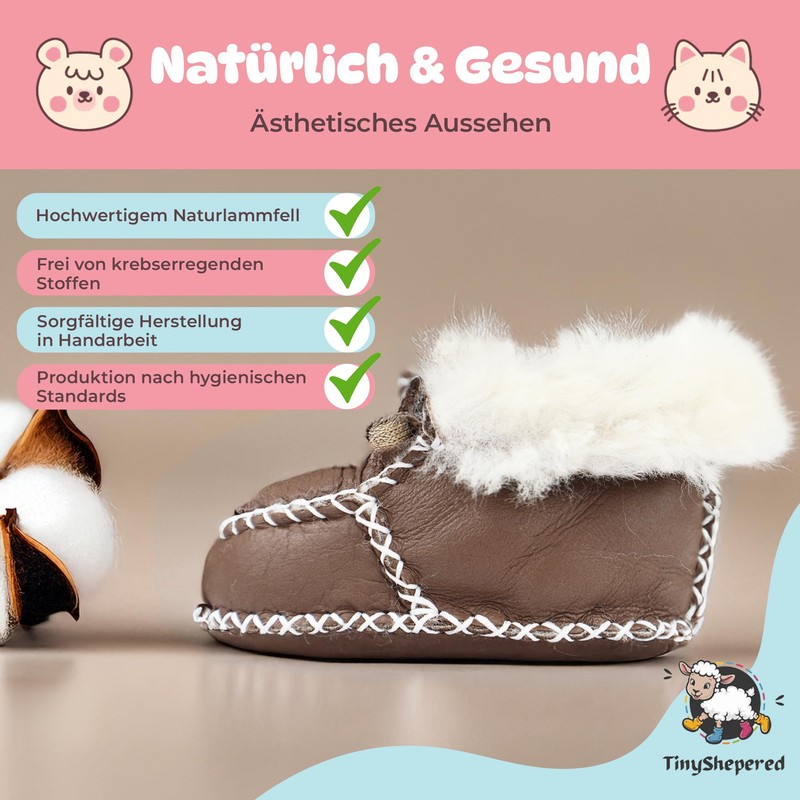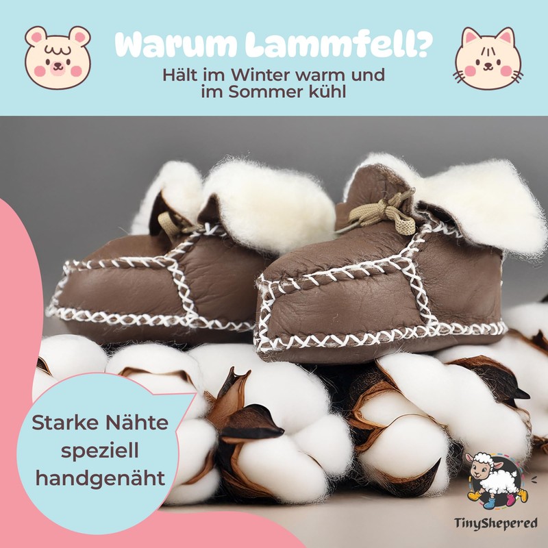 - Natural lambswool: baby shoes made of high-quality lambskin provide natural warmth in winter and breathability in summer, so little feet stay comfortable all year round.