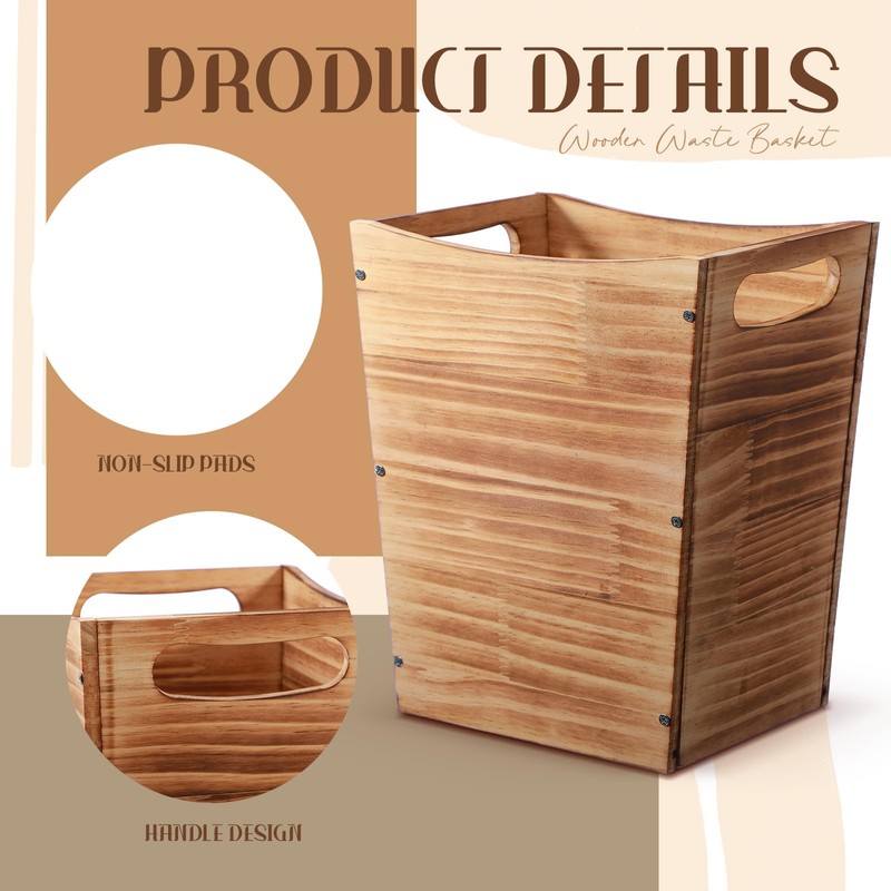 - Sturdy with Handles: these solid wood trash cans come with handles for added durability and easy portability; With proper care, they are long lasting and resistant to wear, ensuring the surface won't be easily damaged by garbage