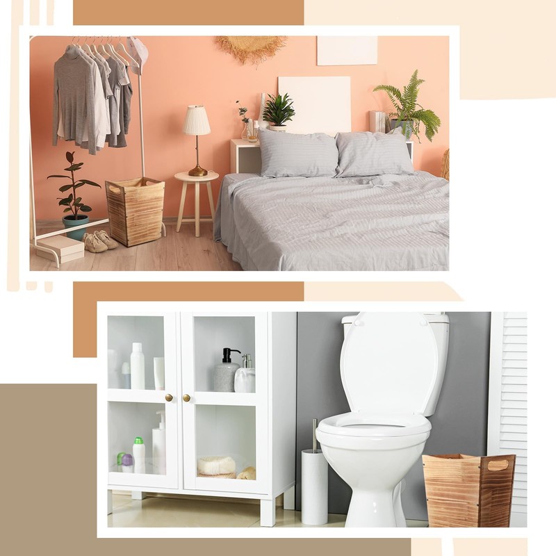 - 2 Pack Wood Trash Can: the wooden trash can wastebaskets boasts a 2 gallons capacity within a compact structure; Measuring 12 inches high, 9.8 inches upper long, and 6.8 inches upper wide, these wood trash cans keep your space tidy and elegant