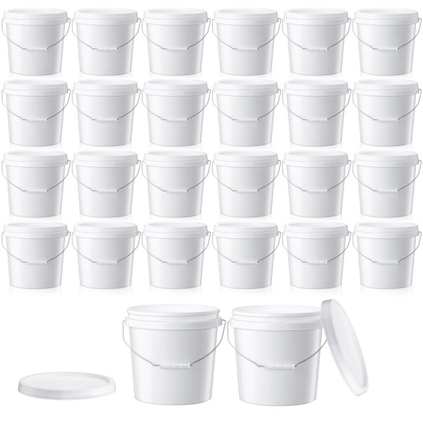 Tioncy 24pcs 2 Gallon Plastic Bucket with Lid Heavy Duty 2 Gallon Bucket Pail with Lid Handle for Storage Container Home Household Cleaning (White)
